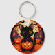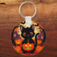 Cute Black Cat with Halloween Pumpkins Key Ring