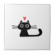 Cute Black Cat with Heart Kitten Valentine Classi Ceramic Tile