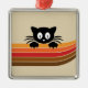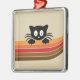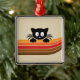 Cute black cat with retro stripes metal ornament