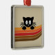 Abstract retro style illustration with yellow, orange, red and brown stripes and black cute cat decoration on beige background for every cat and retro lover. It is easy to customise it by adding your name/monogram etc.