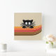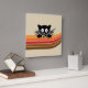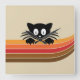 Abstract retro style illustration with yellow, orange, red and brown stripes and black cute cat decoration on beige background for every cat and retro lover. It is easy to customise it by adding your name/monogram etc.