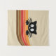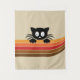 Abstract retro style illustration with yellow, orange, red and brown stripes and black cute cat decoration on beige background for every cat and retro lover. It is easy to customise it by adding your name/monogram etc.