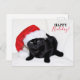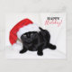Cute Black Cat with Santa Hat Holiday Postcard