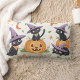 Cute black cats wearing purple witch hats lumbar cushion