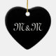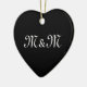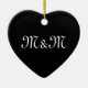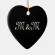 Cute black heart script couple's Initials elegant Ceramic Ornament