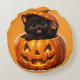 Cute black kitten and jack-o'-lantern spooky sweet round cushion