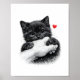 Cute Black Kitten Biting Hand with Love Hear Poster