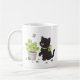 This charming mug features an adorable black kitten curiously gazing at a pot of lucky clovers, accented with soft green tones and a gentle butterfly detail. The calm, cozy illustration creates a peaceful vibe that’s perfect for enjoying coffee, tea, or hot chocolate.