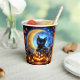 Cute black kitten, jack-o-lantern and moon Paper Cups