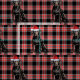 A fun seasonal fabric for crafting those DIY holiday projects for the Black Labrador Retriever dog lover. The dog wears a hat just like Santa's and stands against a red and black plaid.