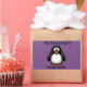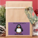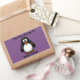 Cute black penguin on purple bookplate sticker