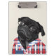Cute Black Pug Dog With Glasses And Check Shirt Clipboard