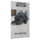 Personalised clipboard with a photo of a cute little black pug puppy.