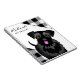 Cute design featuring a black and silver miniature or standard schnauzer and a buffalo plaid / tartan pattern. Easily modify the text or background colour.