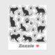 Cute black silhouette cats and paw prints sticker set. Nine different cute cat illustrations with eight individual paw prints. Additionally, the set includes a bonus sticker depicting paw prints on heart made to illustrate the old saying that cats leave paw prints on our hearts. Great little set for true cat lovers with many possible uses like decorating your computer or phone skin or adding a bit of kitty charm to your notebooks.