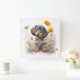 CUTE BLACK & TAN SHORT HAIRED DACHSHUND DOG SQUARE WALL CLOCK