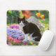 Cute Black White Cat in a Colourful Flowery Garden Mouse Pad