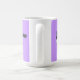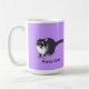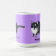 Painting of a cute black and white tuxedo cat done in pointillism, is printed on both sides of mugs, with the statement, Happy Cat! The background colour can be customised.