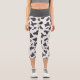 Cute Black White Cow Print Spotted Cowhide Pattern Capri Leggings
