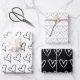 Cute Black White Hearts Pattern Valentine Wrapping Paper Sheet