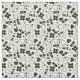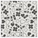 Fabric for nurses, doctors, and health care workers with a pattern of stethoscopes, medicine, thermometers, band-aids, and hearts in black against a white background.