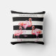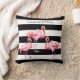 Cute black and white stripes pink flamingo personalised name throw pillow.