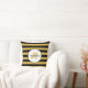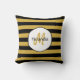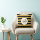 Cute Black Yellow Bee Stripes Name and Monogram Cushion
