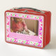 This is a standard metal lunchbox that appears to work just fine. We designed this box ourselves with an uploaded photo and custom text on the front and back. It looks absolutely beautiful except the front of the lunchbox is not centered like it shows in the photo. The print borders don't align with the inset flat part of the box where the preview photo online showed it perfectly centered in there. The back looks nice and centered though.