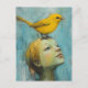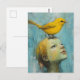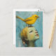 Cute Blond Girl with large yellow bird on her head Postcard