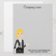 Destei's illustration of a blonde cartoon business woman. The woman is wearing a dark grey pant suit jacket and a white shirt. Her hair is on a side bun and she is holding a black suitcase in one of her hands. The background colour is grey.