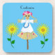 Cute Blonde Pigtails Scarecrow with big sunflowers, to personalise by changing to your name on any background colour