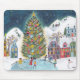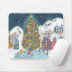 Cute blue Alpine ski lodge skating Christmas Mouse Pad