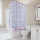 Cute shower curtain featuring pink, and dusty pink butterflies on a blue background make this a unique, girly addition to a bathroom decorated for girls. Plenty of space to customise your name, or add more than one if there are two kids using the same bathroom!