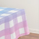 This tablecloth features a cute pastel blue and pink gingham plaid design.