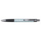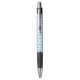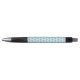 This awesome pen features a graphic image of a cute blue baby boy bee with black legs and beady eyes. He has a pale blue fuzzy body with bright blue stripes and cute blue antennae on his fuzzy head. His delicate little wings have a pale blue mottled pattern on them.