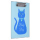 This awesome clipboard features a digital art image of a cute blue cat with a curly tail. His eyes are pale blue with black pupils. He is wearing a pink bow in his hair and a shining blue collar round his neck with a blue token on it.