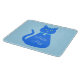 This awesome cutting board features a digital art image of a cute blue cat with a curly tail. His eyes are pale blue with black pupils. He is wearing a pink bow in his hair and a shining blue collar round his neck with a blue token on it.