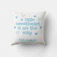 Cute Blue Baby Boy Shower Throw Pillowr with common used phrase 'a little sweetheart is on the way'.