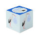 This awesome photo cube features a graphic image of a cute white Stork with black tail feathers holding onto a pale blue bundle of blankets. There is blue text on the bundle that says "Baby Boy". This design is perfect for celebrating a baby boy. You can upload up to 4 photos of your baby and custom text on the top allows you to include name and date of birth.