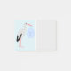 This awesome post it note pad features a graphic image of a cute white Stork with black tail feathers holding onto a pale blue bundle of blankets. There is blue text on the bundle that says "Baby Boy". This design is perfect for celebrating a baby boy.