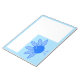 This awesome notepad features a digital art image of a cute blue Baby Boy Thanksgiving Turkey. The Turkey has a bright blue body with blue tail feathers sticking up. It has pale blue legs and beak and cute pale blue eyelids.