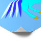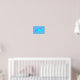 This poster features a digital art image of a cute magical blue baby boy unicorn. The main body of the unicorn is blue and the mane and tail are two different shades of blue. The unicorn has golden hooves and a bright shiny gold horn on top of its head. It has a blue diamond shaped eye. The unicorn has a big smile on its face.