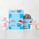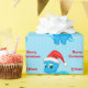 Adorable blue baby dinosaur wearing a Christmas Santa hat. Perfect gift wrap for kids' Christmas presents.