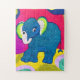 Cute Blue Baby Elephant - Quilt Like Design Jigsaw Puzzle