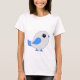 A comfortable and stylish t-shirt featuring a charming, stylised bird design. The graphic shows a plump, cute bird with a light grey body, a deep blue wing and tail feathers, and a matching blue beak and feet. Its large, dark eye gives it an endearing expression. This t-shirt is perfect for bird lovers, nature enthusiasts, or anyone who appreciates a sweet, simple animal design.