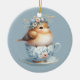Cute Blue Bird with Floral Crown in Teacup Ceramic Ornament