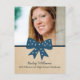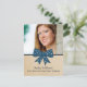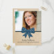 Sweet and charming Cute Bow Graduation Postcard featuring a whimsical polka dot dark blue bow and faux paper texture background. Perfect for announcing your graduate news and inviting friends and family to celebrate the accomplishment. Easy to customise, simply add a photo and your party details in the text fields provided.