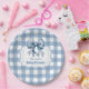 Cute Blue Bow Ribbon Gingham Paper Plate