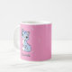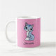 A charming custom name design featuring an adorable blue cat against a vibrant pink backdrop, adding a touch of whimsy and personalisation.