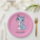 Cute blue cat on pink custom name paper plate